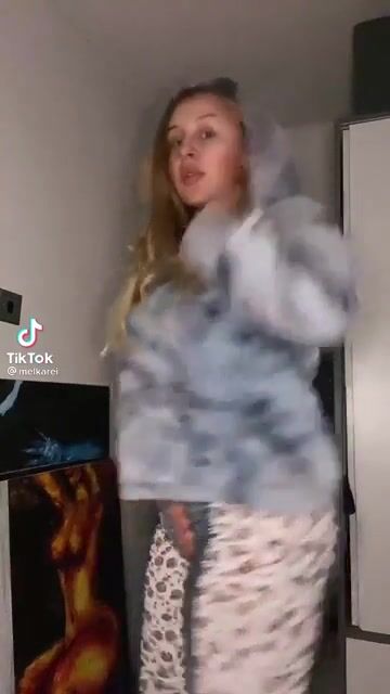 Tiktok girl shaking around her big tits while dancing