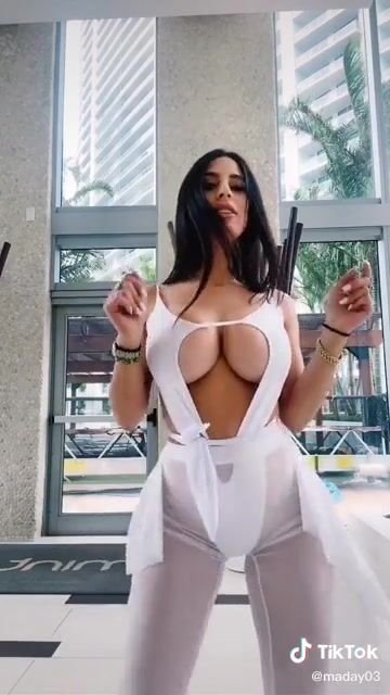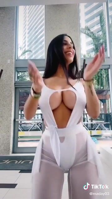 Tiktok girl shaking around her big tits while dancing